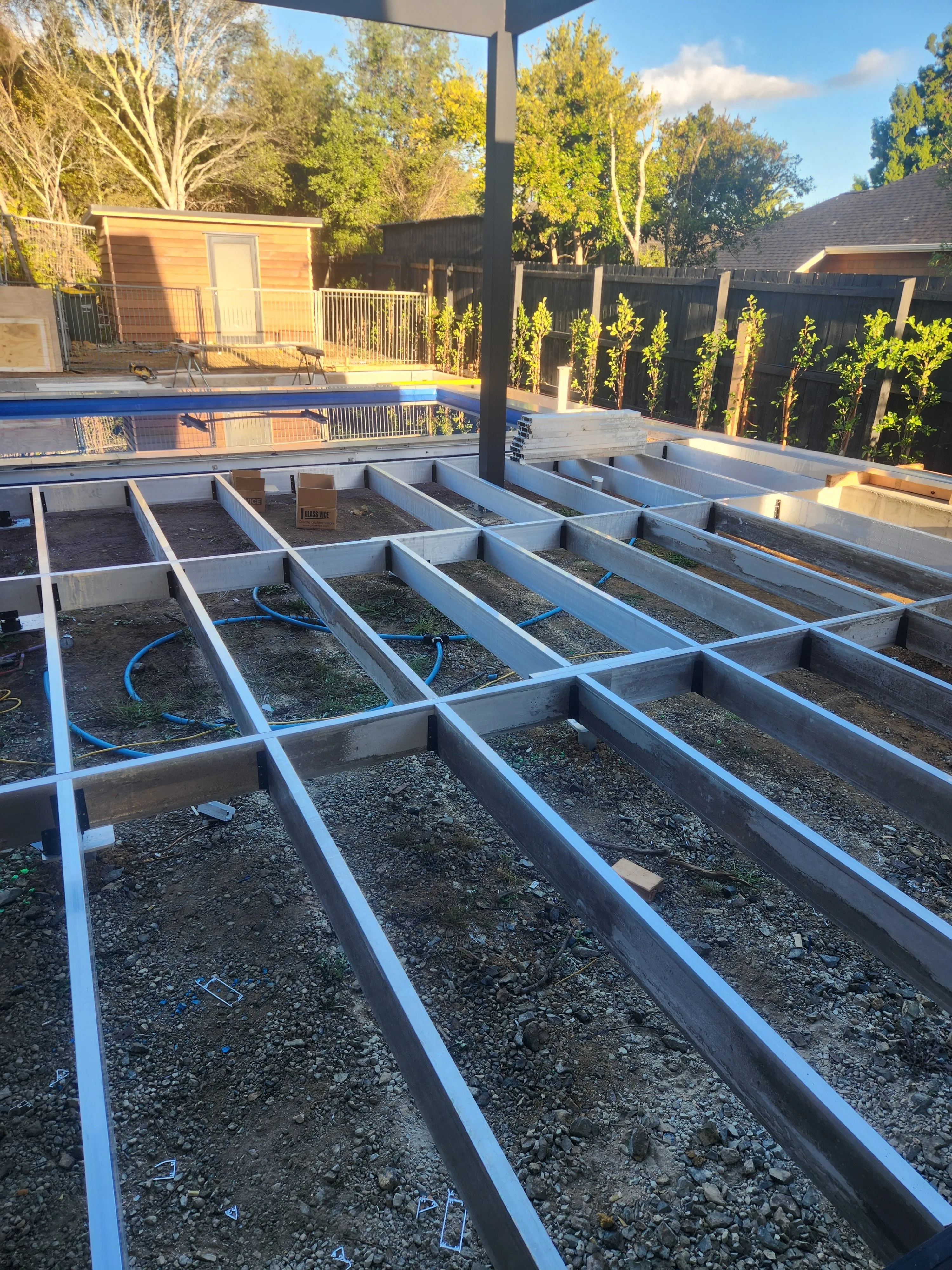 This evolving outdoor space showcases the flexibility of our Anchorjak™ Longspan Joist System, paired with the Cornakeepa overlay to create a clean, modern, and permeable tile deck. Designed to sit flush with the interior floor level and adjacent pool, the system achieves seamless indoor-outdoor flow while maintaining drainage and structural integrity.