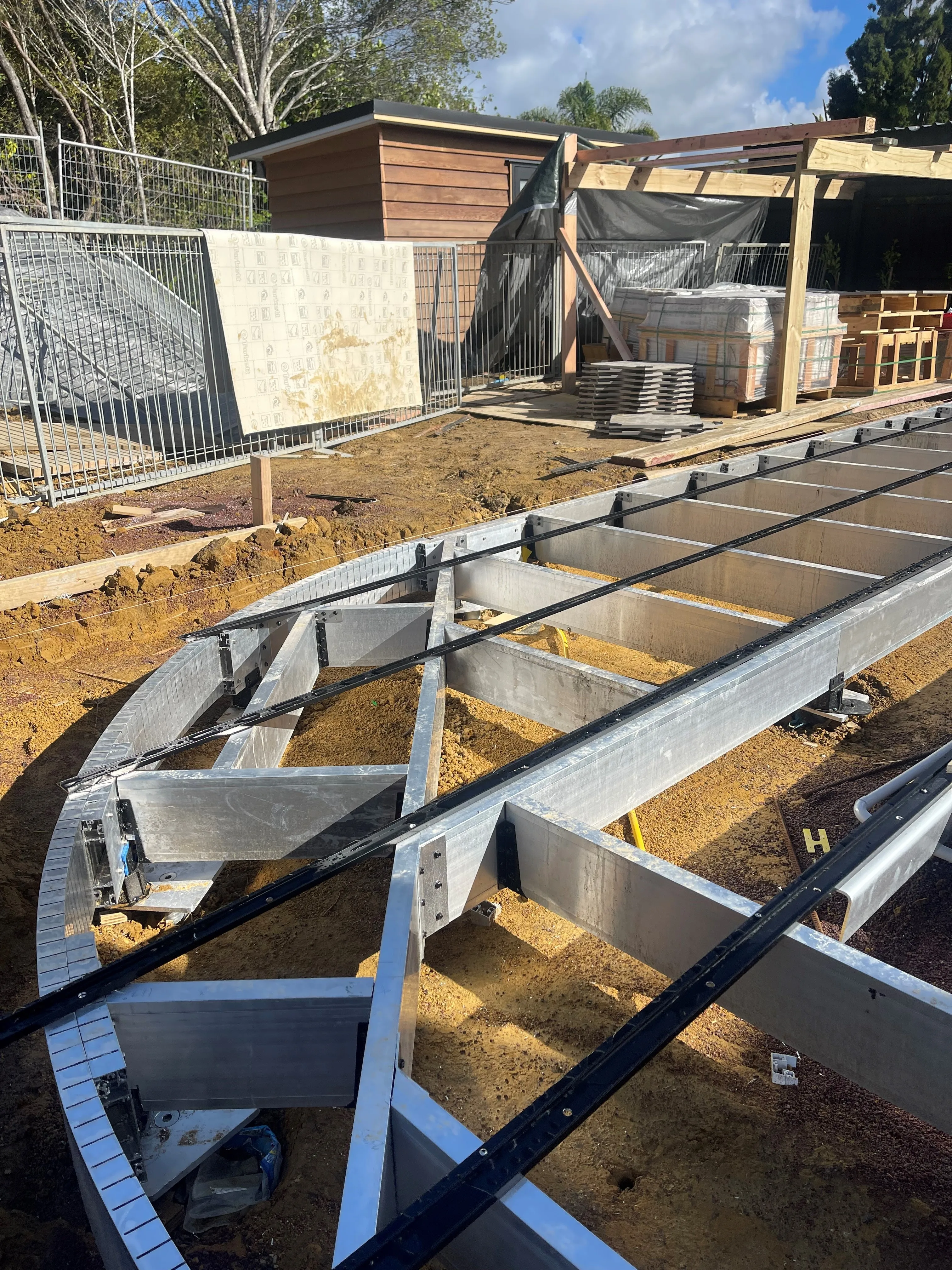 The entire frame is constructed over J Vice™ Ground Screw Piles, eliminating the need for traditional concrete footings and reducing site disruption. The result is a low-maintenance, high-performance solution ideal for complex architectural outdoor areas.